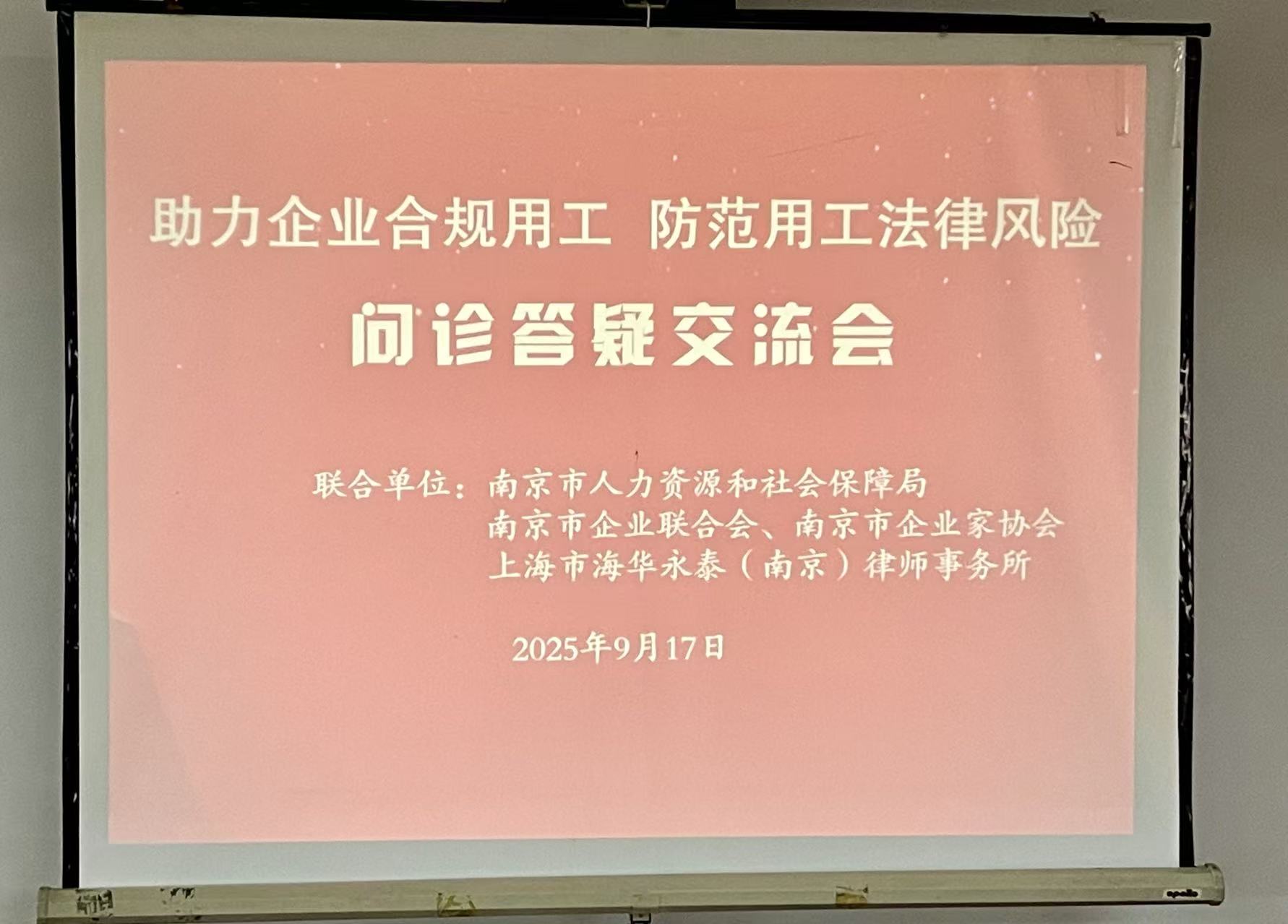 為助力企業(yè)提升用工管理的合規(guī)性,有效防范勞動法律風(fēng)險,9月17日下午,由南京市人力資源和社會保障局、南京市企業(yè)聯(lián)合會、南京市企業(yè)家協(xié)會(簡稱“兩會”)、上海市海華永泰(南京)律師事務(wù)所共同舉辦了“助力企業(yè)合規(guī)用工、防范用工法律風(fēng)險”系列分享交流會,本次活動吸引了眾多企業(yè)的人力資源管理人員及相關(guān)負(fù)責(zé)人120余人參與。