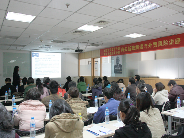 在世界經(jīng)濟(jì)技術(shù)一體化的進(jìn)程中,堅(jiān)定不移地實(shí)行對外開放,是加強(qiáng)我國現(xiàn)代化進(jìn)程的一條重要的強(qiáng)國之路,是我國的一項(xiàng)基本國策。為協(xié)助企業(yè)了解掌握國家對外貿(mào)易的相關(guān)政策法規(guī),以提升企業(yè)利潤,降低外貿(mào)風(fēng)險(xiǎn),3月25日,我會與江蘇宏坤關(guān)務(wù)咨詢有限公司聯(lián)合舉辦《海關(guān)新政與外貿(mào)風(fēng)險(xiǎn)》專題講座。來自臺塑網(wǎng)、南京紅太陽國際貿(mào)易、金陵船廠等37家會員單位共計(jì)60人參加。